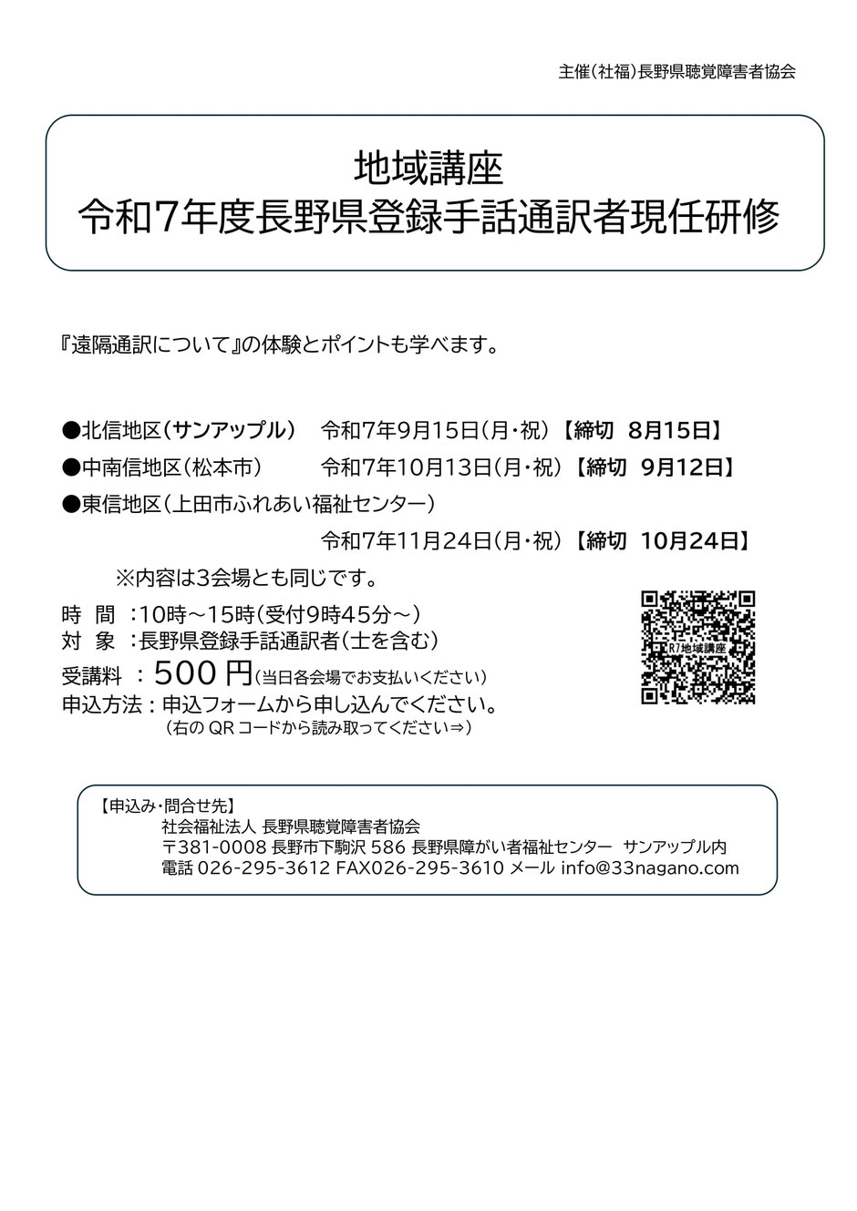 【令和7年度長野県登録手話通訳者現任研修】地域講座