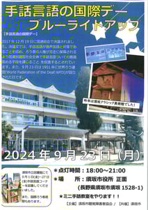 ・佐久市役所(8階)にて手話言語に関する展示と、市役所に横断幕を掲示(予定)