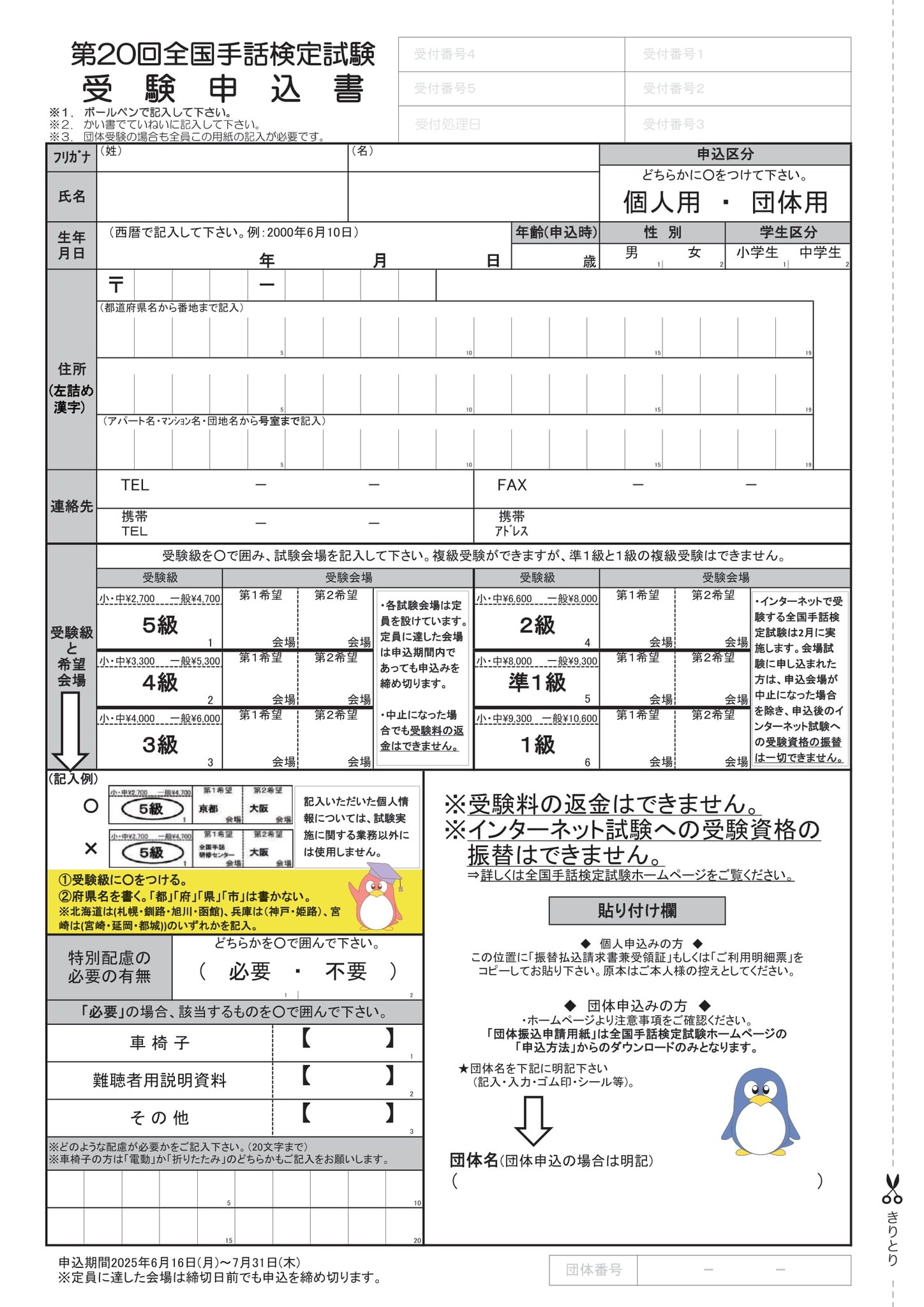 お知らせ · 2025/06/22 【終了しました】第20回全国手話検定(2025年) 試験内容や申込方法などの詳しいことは以下からご確認ください 全国手話検定試験ホームページ⇐こちらをクリック 第20回全国手話検定試験.pdf PDFファイル 1.2 MB ダウンロード 第20回受験申込書(書式).pdf PDFファイル 322.7 KB ダウンロード tagPlaceholderカテゴリ: